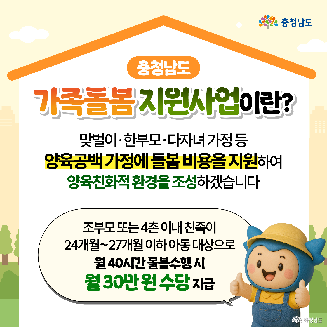 가장 안전하고 안심할 수 있는 돌봄 환경을 만드는 충청남도광역지원센터