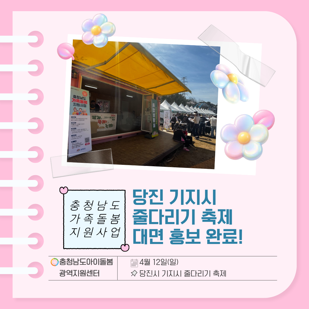 충청남도 가족돌봄 지원사업 당진 기지시줄다리기축제 대면홍보 실시