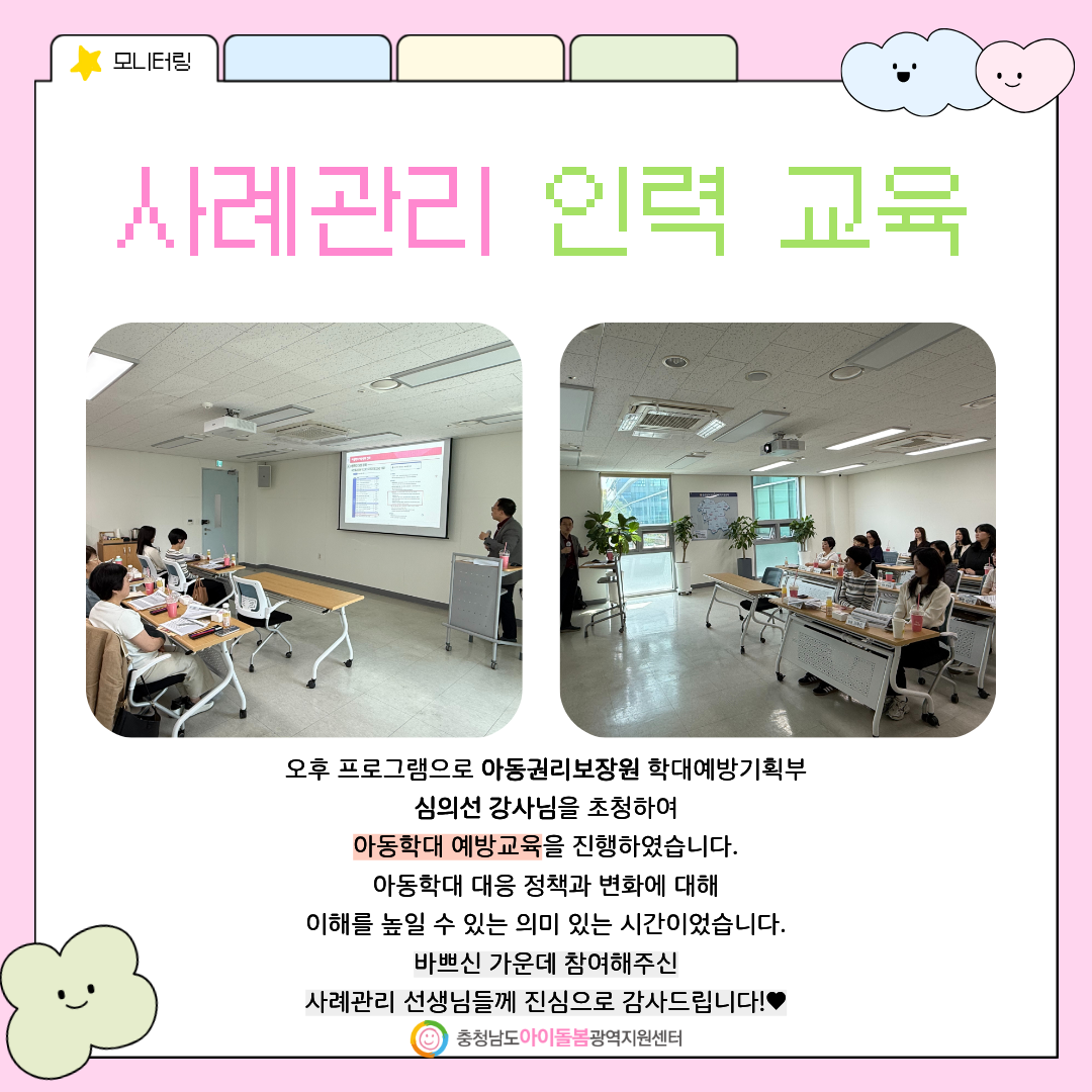 충남 아이돌봄센터 사례관리 인력 회의 및 교육 진행